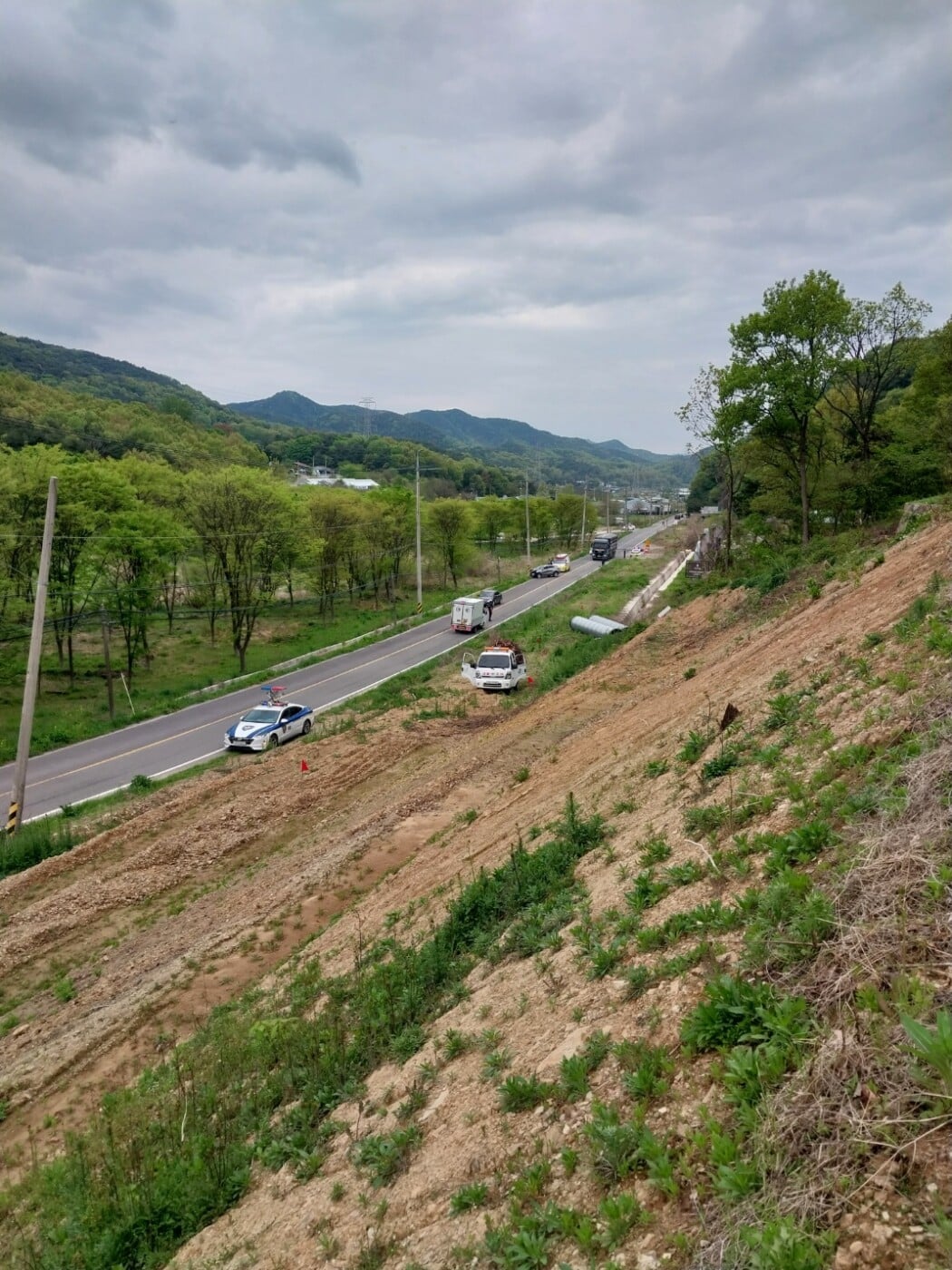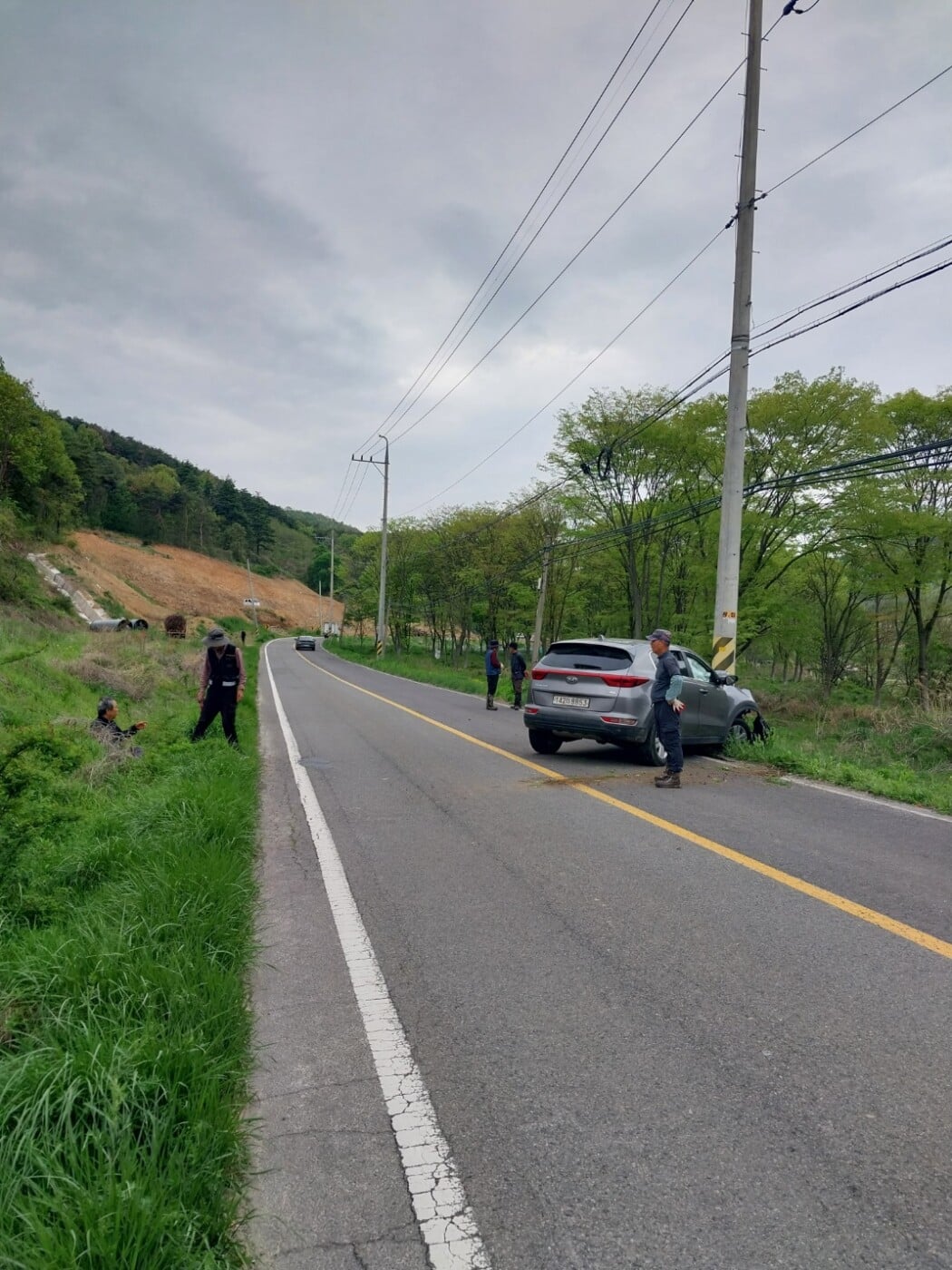 마침 인근 산에서 소나무 방제작업을 하던 고령군청 소속의 산림재난 대응단 방제팀 대원들이 119에 연락을 취한 뒤에 신속하게 운전자를 안전하게 보호조치를 하고 교통 정리를 했다.